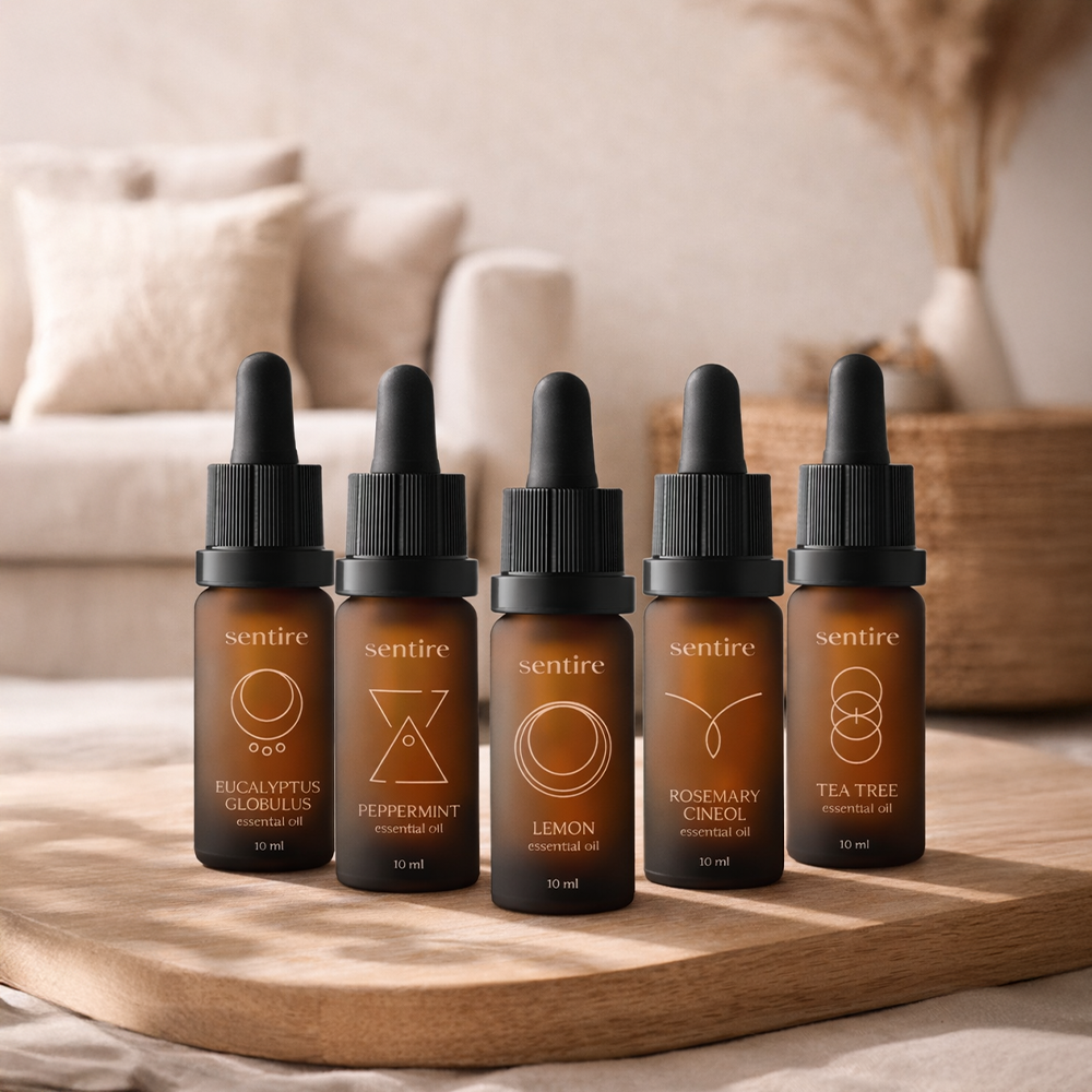 Set sadrži eterična ulja eukaliptusa globulusa, paprene metvice, limuna, ružmarina i čajevca – poznata po svom svježem, čistom i okrepljujućem karakteru. Zajedno čine aromatičnu bazu za jutarnje rituale, radne prostore, sezonsku podršku disanju i prirodno osvježenje doma.