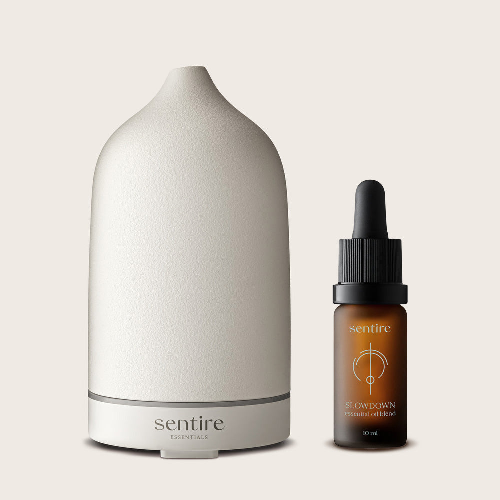 Slowdown Ritual Set donosi luksuznu verziju aromaterapijskog iskustva. Kombinacija Slowdown blend-a i elegantnog keramičkog difuzora stvara prostor smirenosti i harmonije. Idealno za večernje rituale i poklon iskustvo.